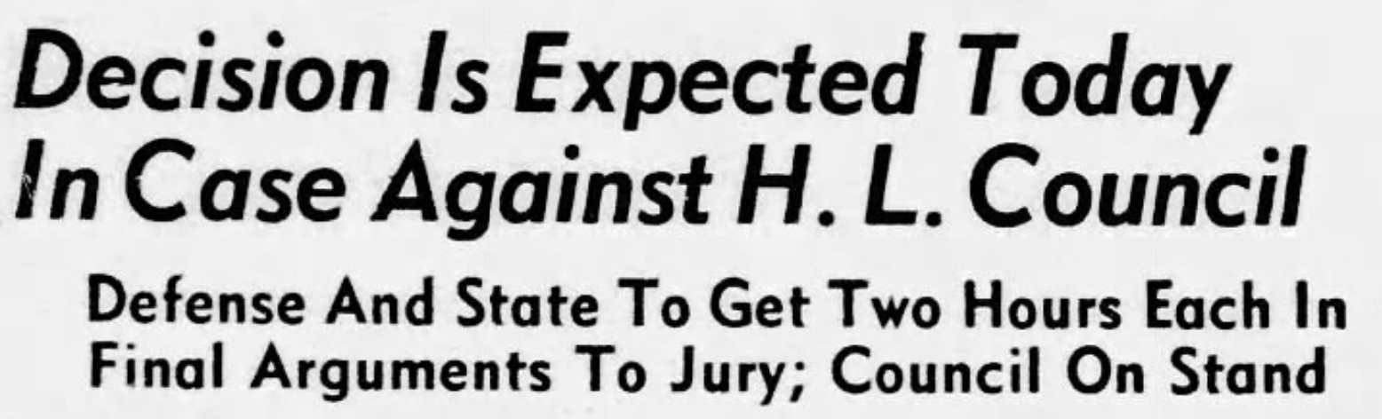 Council’s employer, Duke Power Company, operated Durham’s city buses. They posted the driver’s $2,500 bond and provided him with a lawyer. Council returned to his home until his trial for manslaughter in September of 1944.